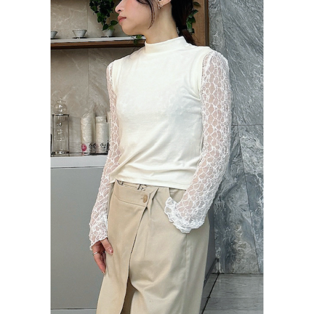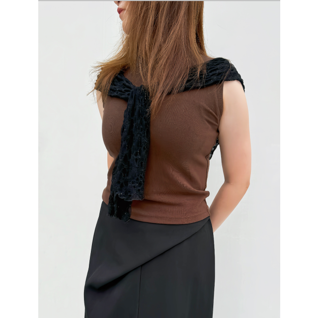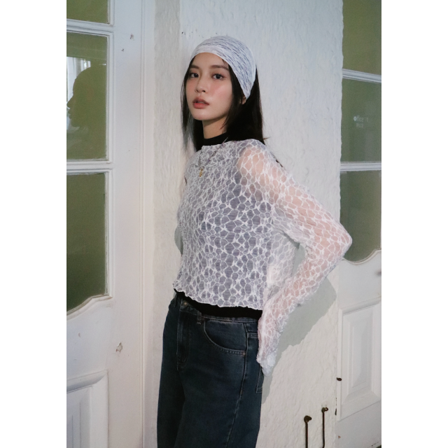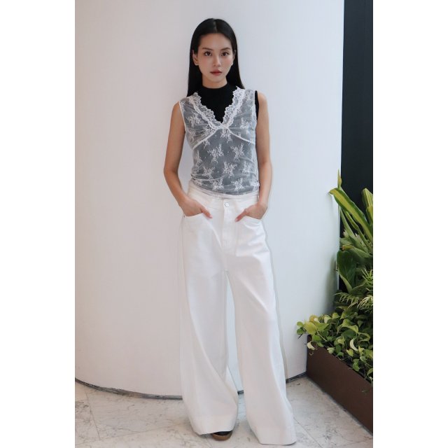 白色v領喱士背心 V-NECK LACE SEE-THROUGH VEST - WHT