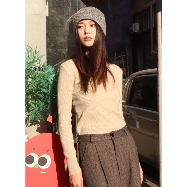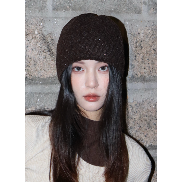 SEQUIN KNIT BEANIE - BROWN 亮片針織帽-棕色