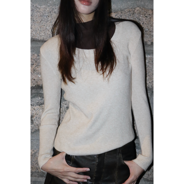 LONG SLEEVED RIBBED T-SHIRT - CREAM