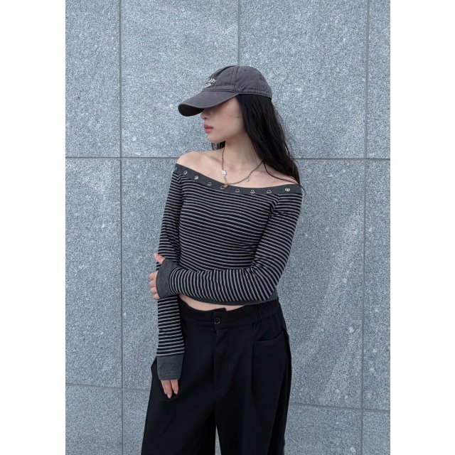 LONG SLEEVED RIBBED T-SHIRT - BKACK